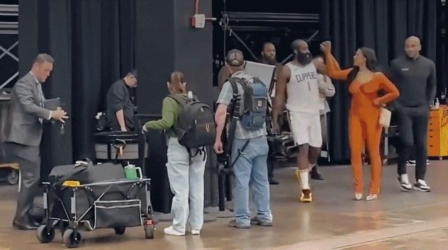 理由是登哥和比尔老婆关系匪浅,一次赛后,哈登和比尔老婆开心握手